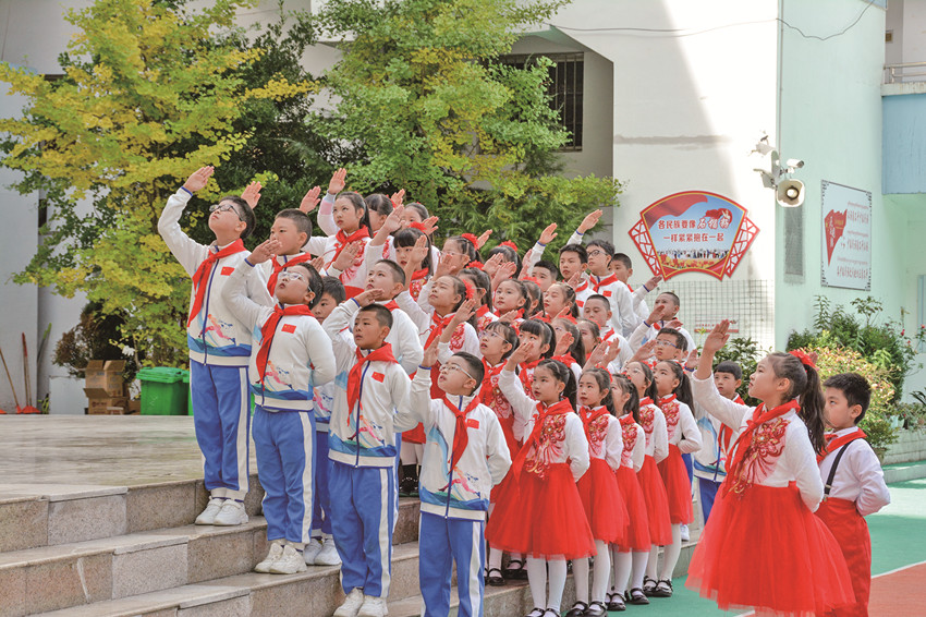 活躍提升組織生活也是少先隊工作強基固本的重要環(huán)節(jié)。通過健全少先隊階梯式成長激勵體系;全面實施分批入隊、分段教育、分級激勵和推優(yōu)入團;依托“紅領(lǐng)巾獎章”覆蓋隊中教育全過程等措施,全市14至15周歲新入團團員經(jīng)由少先隊組織推優(yōu)入團達100%。此外,全覆蓋開展“開學第一堂隊課”、主題隊課活動,規(guī)范舉行入隊儀式等,讓少先隊員組織意識和光榮感全面增強。