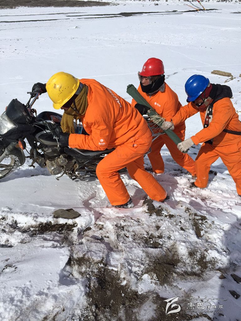凌晨6點過,西夏帶領(lǐng)幾個同事,備好望遠(yuǎn)鏡、10千伏操作干、腳鉤、安全帶等常用工具,騎著摩托車從阿日扎變電站出發(fā)了。一出門,夾雜著雪花的寒風(fēng)撲面而來,刺骨地冷,他和兄弟們不得不全副武裝,毛皮帽子、厚圍脖、皮手套,安全帽全部都戴上了。為了更保暖,同時減少顛簸受罪,有的干脆把毛毯墊在了摩托車上。但即使是這樣,風(fēng)雪還是直往脖子里鉆,實實在在冷了個透心涼。