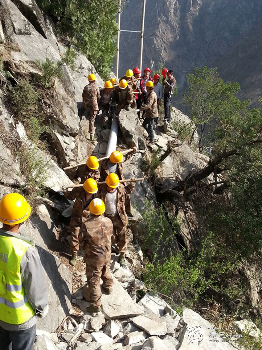 崇山峻嶺,羊腸小道,運送變壓器器材只能靠人工,施工隊人手不夠,村民主動參與,齊心協(xié)力將器材運送到數(shù)公里以外的建設(shè)工地。