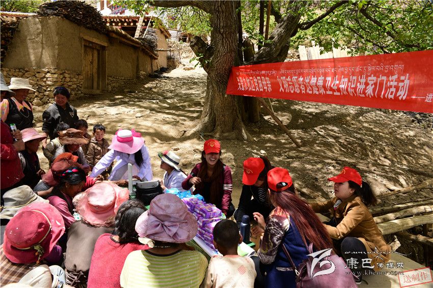 中心絨鄉(xiāng)安里頂村的四郎志瑪剛剛給地里的農(nóng)作物澆水回來,就發(fā)現(xiàn)村里來了一群戴著小紅帽的“不速之客”,他們周圍聚集著提前趕來的鄉(xiāng)親。兩位穿著白大褂的“小紅帽”正在為排著長(zhǎng)隊(duì)的鄉(xiāng)親們免費(fèi)體檢,另外還有兩位戴“小紅帽”的女性志愿者召集婦女村民為她們講解健康衛(wèi)生知識(shí),演示女性衛(wèi)生用品的使用方法。