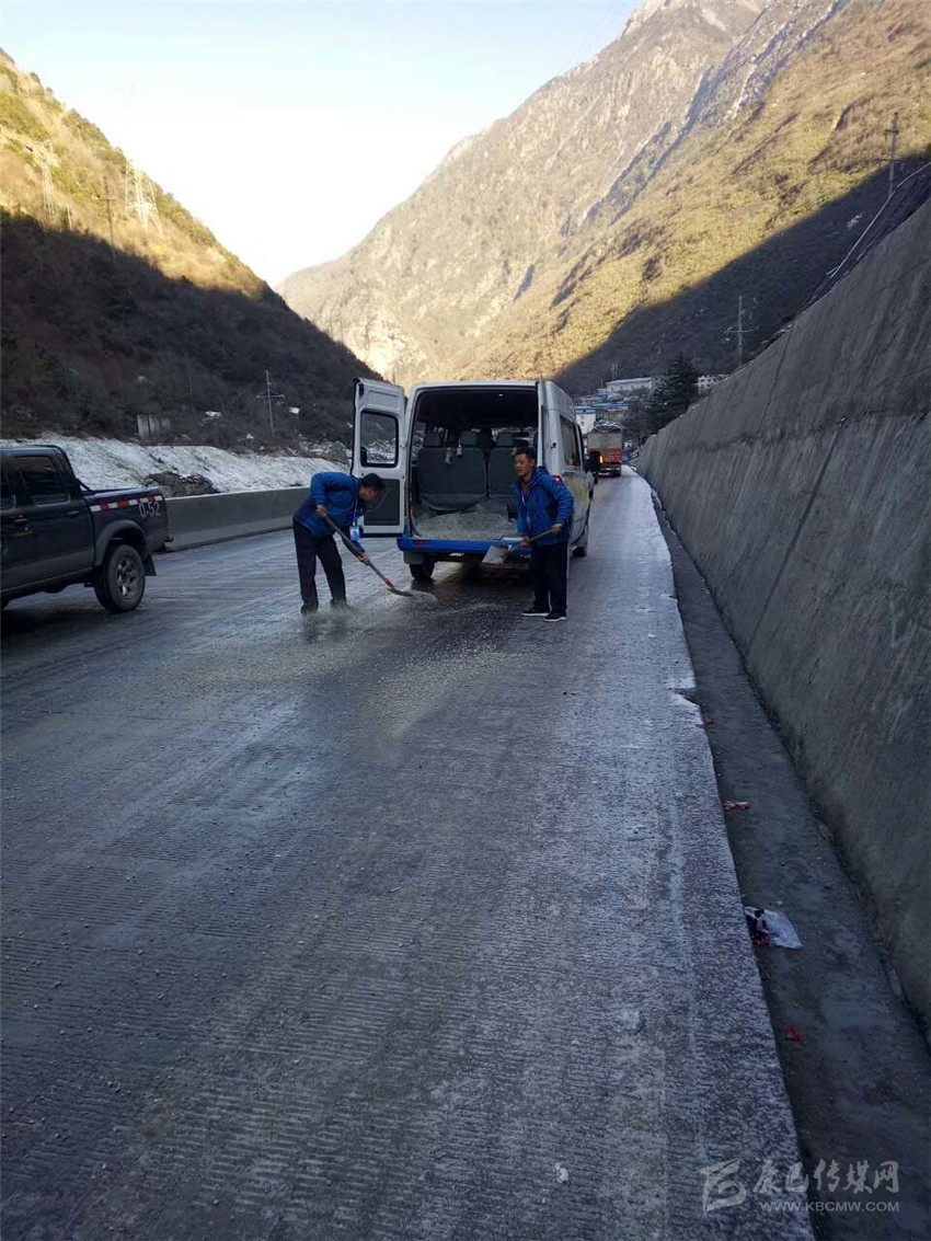 本網(wǎng)訊(李燕 本網(wǎng)記者 文/圖)近日,為有效減少和預(yù)防冬季雨雪冰凍惡劣天氣造成道路交通安全事故,康定翔瑞客運有限公司加大安全隱患排查,多措并舉確保道路通行安全。圖為公司工作人員在康定污水處理廠至菜園子段鋪墊防滑沙。