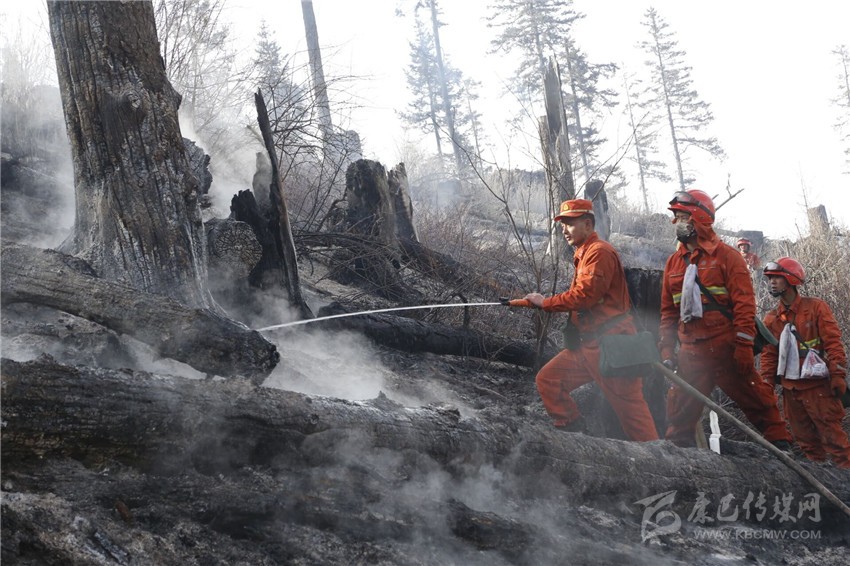 2月10日,火頭蔓延至火場東北一線,參戰(zhàn)官兵發(fā)現幾處被冰雪覆蓋的水源,火場前指決心改變戰(zhàn)法,采用7組水泵串聯接力向火場供水主攻明火,常規(guī)機具輔助配合消除煙點的方式,將部隊分為水泵和常規(guī)機具兩個梯隊,在火場火勢最為猛烈的東北側展開滅火作戰(zhàn)。參戰(zhàn)官兵用自身攜帶的鍬鎬奮力破冰面抽水,在水泵的助力下,明火得到了有效壓制并逐步熄滅。隨后,部隊和地方群眾全部轉入火場清理看守階段。