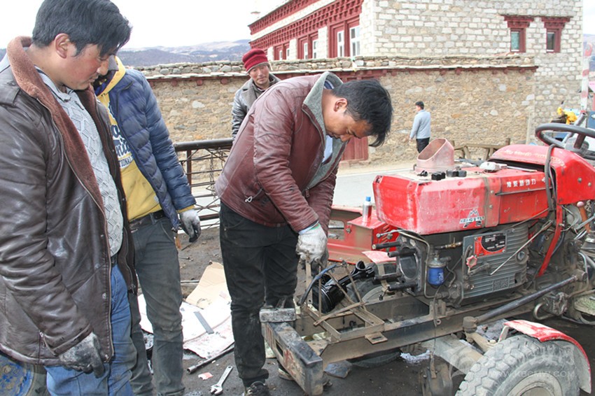 有的人家農(nóng)機壞了,又不好拖運到壓瑪維修店里的,只要一個電話,壓瑪就自己開車到別人家里去修,不收出工費,只收維修費。這樣的事情十分常見。今年2月20日晚上,格西村阿昂家里的拖拉機壞了,第二天一早又要用,壓瑪師傅騎著摩托車趕了7公里夜路,修好后只收了120元零件費。阿昂說:“要是拖到縣城修,少了1000多元脫不了手,還不算吃住和耗費的時間。”