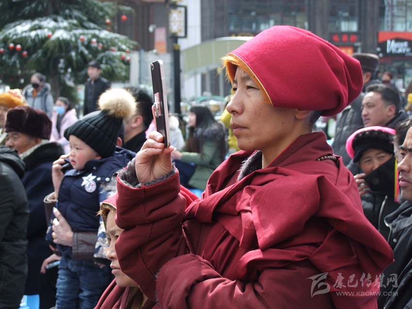 “節(jié)目太好看了,我最喜歡的就是弦子,每次一聽到它的旋律,我就非常激動(dòng)。雖然天氣很冷,但看了這些精彩的表演,我很開心,看到他們在臺上唱歌跳舞,感覺自己又回到了年輕的時(shí)候,在老家的草原上放聲歌唱。”觀看演出的巴登老人對記者說。記者在現(xiàn)場看到,觀看演出的觀眾無論老少都看得十分入迷,有的觀眾還拿出手機(jī)照相、錄像,發(fā)在朋友圈,有的直接和不在現(xiàn)場的親人、朋友視頻,讓他們也感受康定的藏歷新年氛圍;有的小朋友由于個(gè)子不夠看不到舞臺,在征得工作人員同意后,小心翼翼的站在了凳子上,看到表演后開心地笑了。