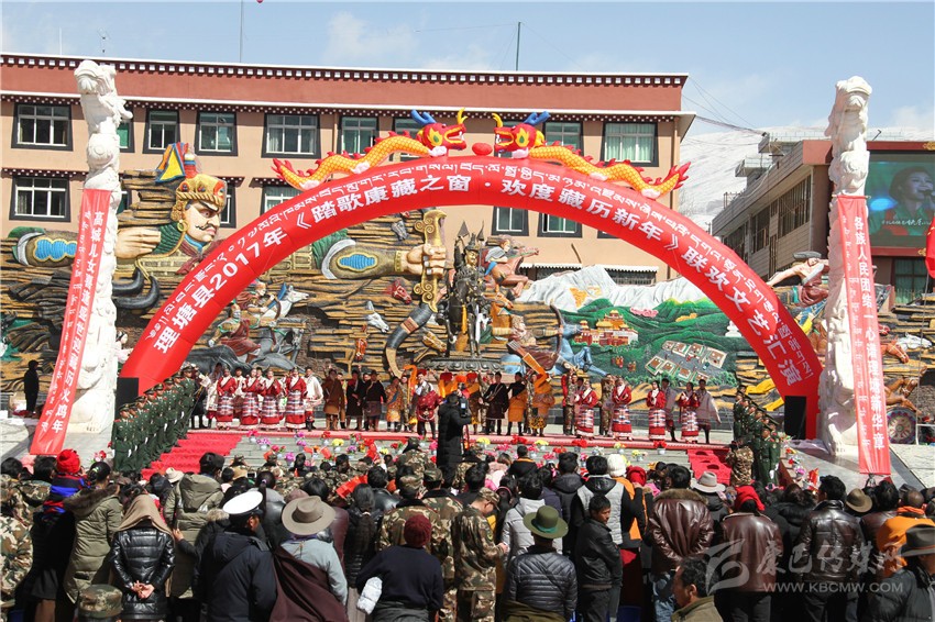 瑞雪初霽,踏歌迎春,2月28日,藏歷火雞新年初二,理塘縣格薩爾廣場上隆重舉行2017年“踏歌康藏之窗·歡度藏歷新年”文藝匯演,本次活動由縣委、縣人民政府主辦,縣委宣傳部、武警部隊、甲洼民間藏戲藝術團等單位承辦。