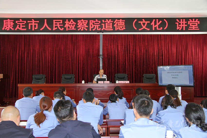 為推進(jìn)檢察文化與公民道德建設(shè),深入學(xué)習(xí)九龍縣人民檢察院原黨組書(shū)記、檢察長(zhǎng)蘇知斌同志的先進(jìn)事跡,扎實(shí)開(kāi)展政法機(jī)關(guān)“講政治、提能力、鑄忠魂”主題教育活動(dòng),8月2日,康定市人民檢察院舉辦了道德(文化)講堂活動(dòng)。我州學(xué)者韓曉紅圍繞康巴文化和社會(huì)責(zé)任等,作了題為“文化與社會(huì)安全”的專題講座。 (胡海佳 攝影報(bào)道)