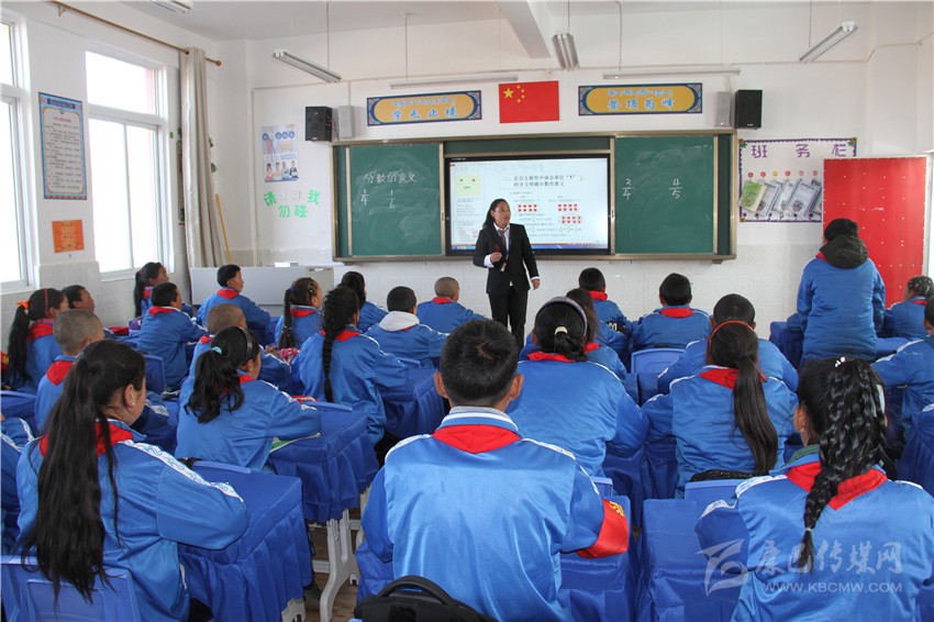 理塘縣四完小學生在多媒體教室上課。
