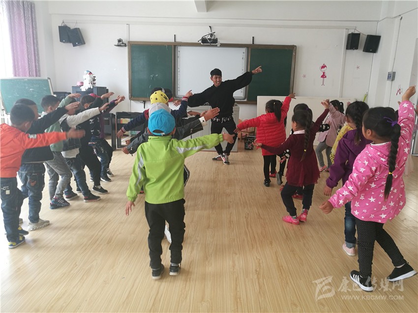 巴蘇給人的印象陽光、帥氣、極具親和力。此時的他正在操場上帶領著大班的孩子上體育課,活脫脫一個“孩子王”。