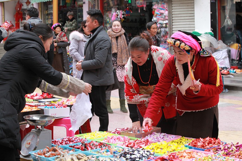 春節(jié)藏歷新年將至,理塘縣各族群眾開始為新春藏歷新年忙活起來,大街小巷人頭攢動(dòng),有的全家出動(dòng)購置年貨,濃濃的年味在世界高城涌動(dòng)。2月7日,理塘縣各大超市、商店迎來了銷售旺季,店家將酒水、堅(jiān)果炒貨、糖果餅干等各類年貨分門別類,放在最顯眼的位置,便于顧客挑選。(縣委中心報(bào)道組 葉強(qiáng)平 胡歡 攝影報(bào)道)