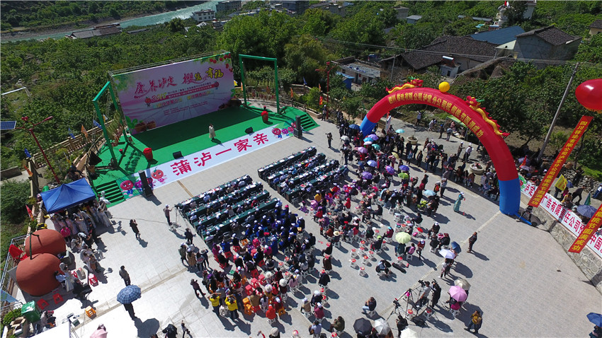 此前的4月27日,濛濛細(xì)雨中,一場“既高規(guī)格又接地氣”的主題晚會更是點(diǎn)亮紅城,耳熟能詳?shù)挠茡P(yáng)樂曲、龍騰飛揚(yáng)的歌伴舞、深情款款的詩朗誦,《往事瀘定》《紅色瀘定》《幸福瀘定》三個篇章引得臺下喝彩連連,掌聲雷動,瀘定橋廣場更是被“層層包圍”。在活動現(xiàn)場,蒲瀘兩地旅游餐飲行業(yè)協(xié)會聯(lián)合打造的文創(chuàng)旅游產(chǎn)品——櫻桃小酒正式亮相啟售。