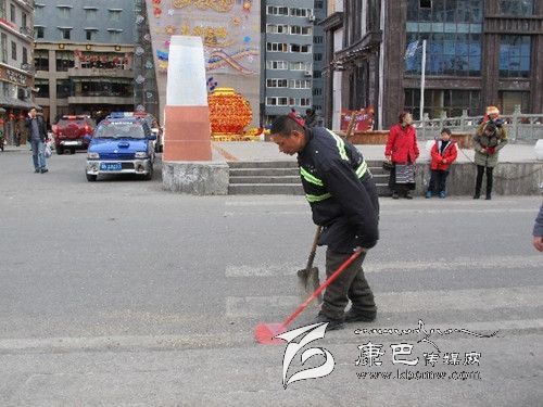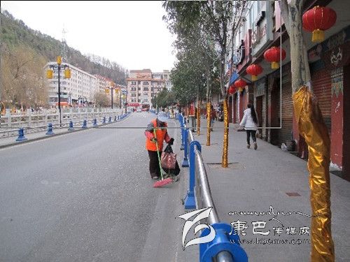 春節(jié)期間,環(huán)衛(wèi)工人們放棄節(jié)假日,用辛勤勞動換來了城市的干凈、整潔。圖為記者在康定街頭捕捉到的鏡頭。