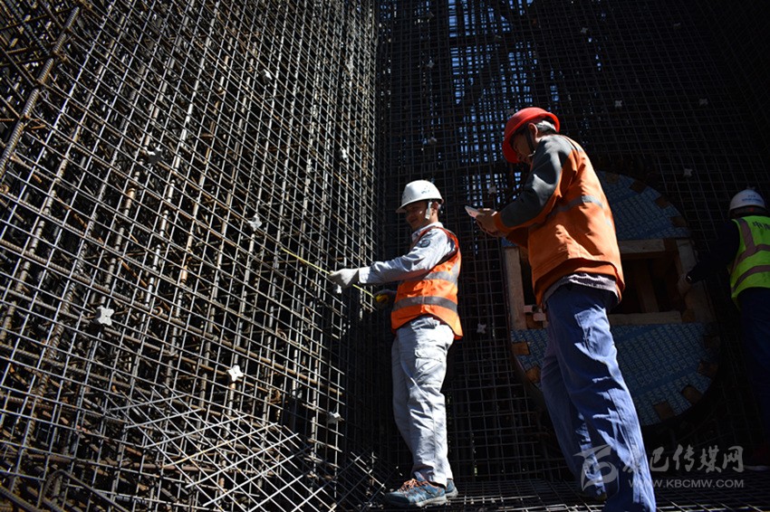 工人正在密植橋墩“鋼筋網”。