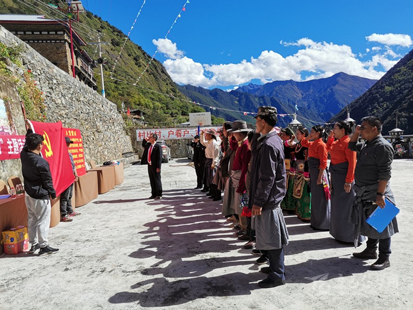 次仁拉初(右)在指導(dǎo)當(dāng)?shù)厝罕姟?/strong>