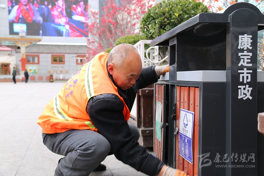 康定的街頭,在匆忙的人群中,那些身著橘黃色保潔服的環(huán)衛(wèi)工人隨處可見。在溜溜城步行街,他們揮動(dòng)著掃帚,掃起果皮、紙屑;在情歌廣場,他們拿著抹布一遍一遍地擦拭著垃圾桶;在彩虹橋垃圾收集站點(diǎn),他們將垃圾桶里的垃圾裝上壓縮車,運(yùn)往垃圾處理廠……