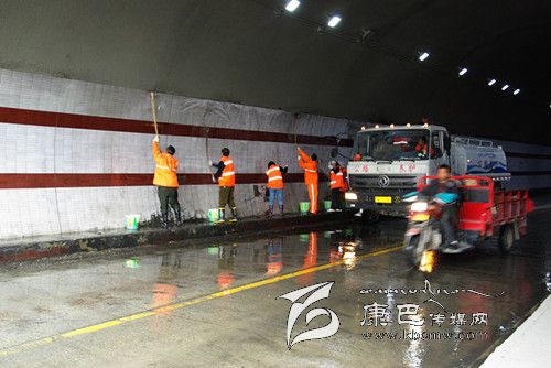 4月2日,瀘定公路分局瀘定黨小組組織機(jī)關(guān)黨員干部開展黨員義務(wù)勞動(dòng)活動(dòng),對國道二康路紅軍橋隧道進(jìn)行了大清洗。清洗采用以隧道清洗車為主、人工清洗為輔的作業(yè)方法,并安排專職交通指揮人員配合作業(yè)人員對清洗路段進(jìn)行了交通管制,以確保作業(yè)人員及過往車輛行人的安全。同時(shí),組織公路養(yǎng)護(hù)人員對兩條省道隧道內(nèi)的燈具、內(nèi)壁和反光標(biāo)牌標(biāo)線等進(jìn)行了清洗。(賀淑明 攝)