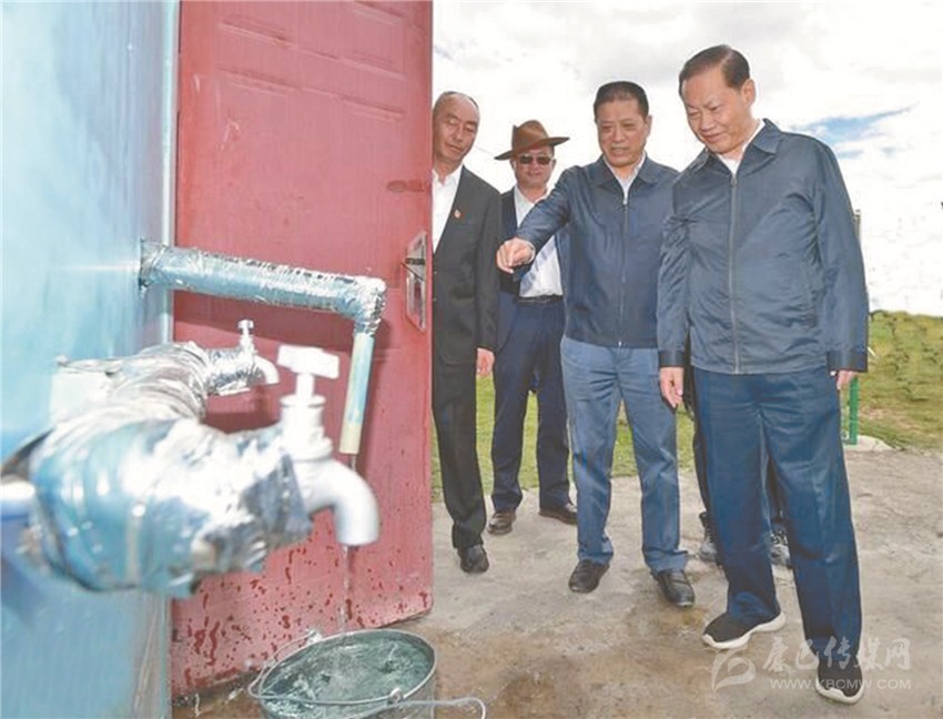 2020年6月15日,四川省委書記彭清華(右一)赴石渠縣查看包蟲病防治安全飲水建設、管理、使用情況,州委書記劉成鳴(右二)陪同。