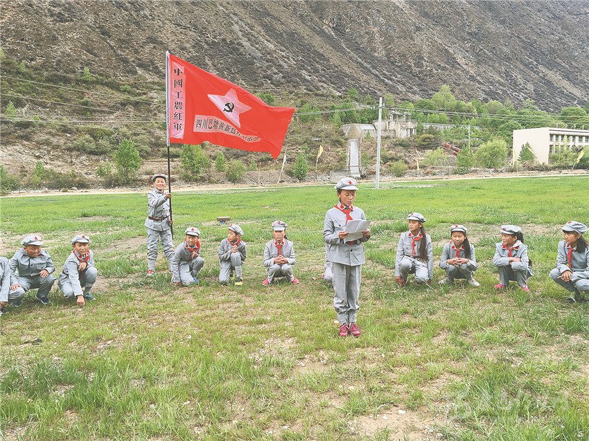 在巴塘,紅色教育是各個學(xué)校的“必修課”。巴塘金弦子小學(xué)少年軍校是巴塘縣第一所少年軍校。鮮明特色、多彩活動、創(chuàng)新教育,渲染出絢麗“紅色”。學(xué)校教務(wù)副主任陳雪秋告訴筆者,革命傳統(tǒng)不能忘,紅色精神代代傳,少年軍校是接力站,把革命火炬接續(xù)傳遞;是大熔爐,讓小小少年錘煉意志、升華靈魂,讓紅色的旗幟高高飄揚。