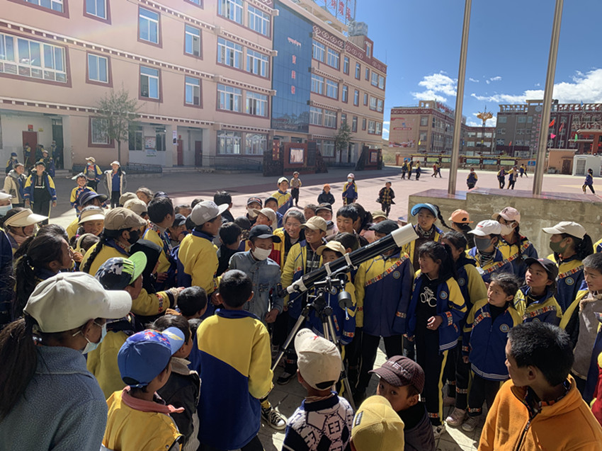 賞月活動(dòng)結(jié)束后,毛承將自費(fèi)購買的天文望遠(yuǎn)鏡捐給了城關(guān)小學(xué)。談及未來的使用計(jì)劃,該小學(xué)傾中校長說:“接下來,章振清老師會(huì)在學(xué)校成立天文興趣小組,培養(yǎng)學(xué)生探索科學(xué)的興趣,既能豐富學(xué)校的選修課,開闊孩子的視野,又可以將傳統(tǒng)知識(shí)和藏族文化相結(jié)合,加強(qiáng)兩個(gè)民族的文化交流,加深孩子們對中華民族大家庭的認(rèn)同感!”