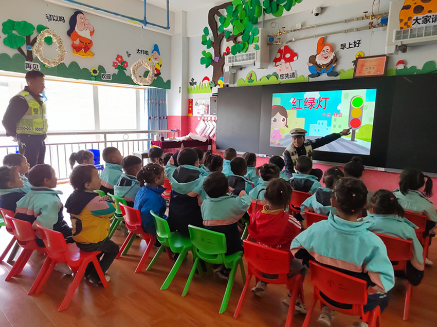 本網(wǎng)訊 日前,理塘縣高城鎮(zhèn)幼兒園開(kāi)展了交通安全進(jìn)課堂活動(dòng),引導(dǎo)孩子們從小養(yǎng)成遵守交通規(guī)則的好習(xí)慣。圖為交警為幼兒講解交通安全知識(shí)。降央曲西 葉強(qiáng)平 攝影報(bào)道