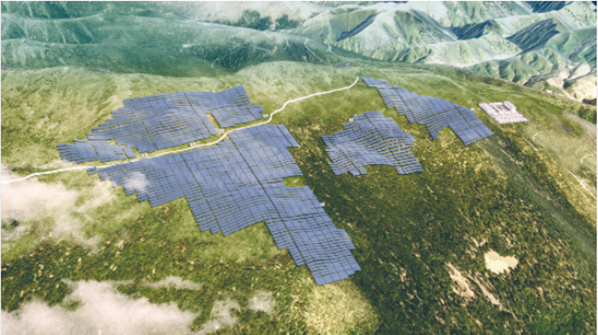 溪古水電站水光互補(bǔ)項(xiàng)目建成效果圖。