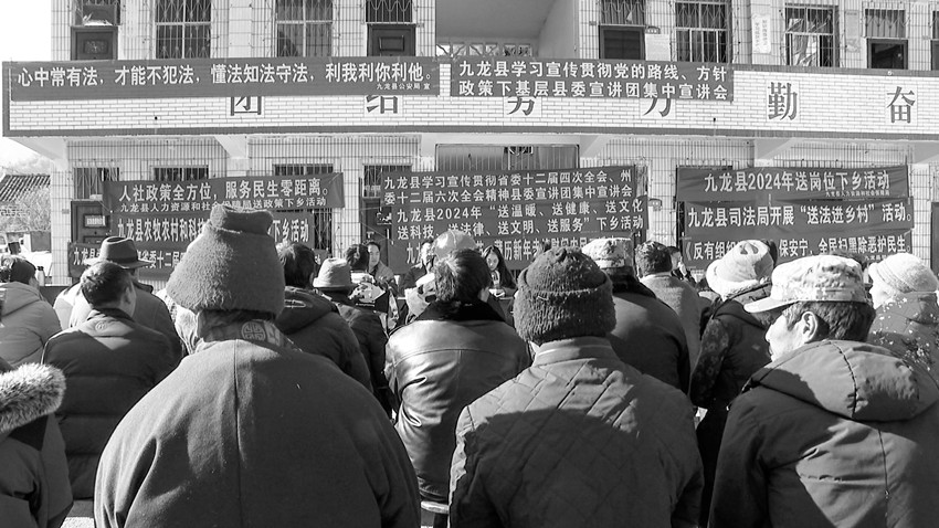 本網(wǎng)訊 1月12日至14日,九龍縣委宣傳部組織縣司法局、縣農(nóng)牧農(nóng)村和科技局、縣衛(wèi)生健康局等部門(mén),聯(lián)合開(kāi)展了學(xué)習(xí)宣傳貫徹習(xí)近平新時(shí)代中國(guó)特色社會(huì)主義思想、省委十二屆四次全會(huì)精神、州委十二屆六次全會(huì)精神宣講暨“七下鄉(xiāng)”暖冬行動(dòng)。