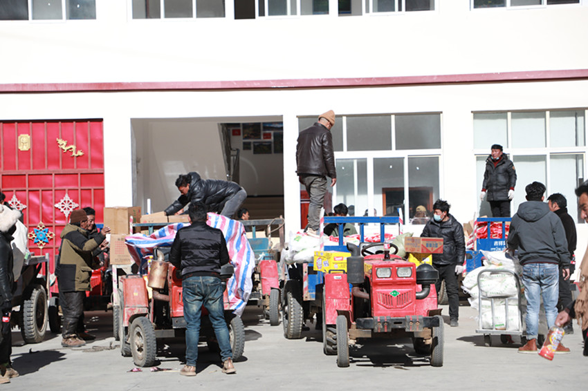 “今天我們村的17戶村民來領(lǐng)物資,臨近春節(jié)了,這些生活用品的發(fā)放真是太及時了,感謝黨和政府的關(guān)懷,我們的生活真是越來越好了?!睙峒余l(xiāng)拉巴村村民昂布開心地說。
