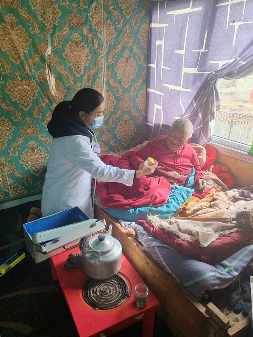 沈富瓊得知老人的病情后,隨即準(zhǔn)備好藥品,安排同事和自己第二天一早就去老人家中為他看病?!翱ㄗ?、卡卓(藏語:謝謝),沈醫(yī)生,快過年了還麻煩你們來給我們看病送藥,真的感謝你們?!?沈富瓊與同事離開時(shí),呷拖的家人緊握著他們的手表達(dá)著感謝。為了讓麻邛鄉(xiāng)的鄉(xiāng)親們度過一個(gè)平安健康的年,衛(wèi)生院的醫(yī)護(hù)人員們沒有停止忙碌的身影,始終堅(jiān)持在一線,及時(shí)出診、默默付出,守護(hù)著農(nóng)牧民群眾的生命健康。