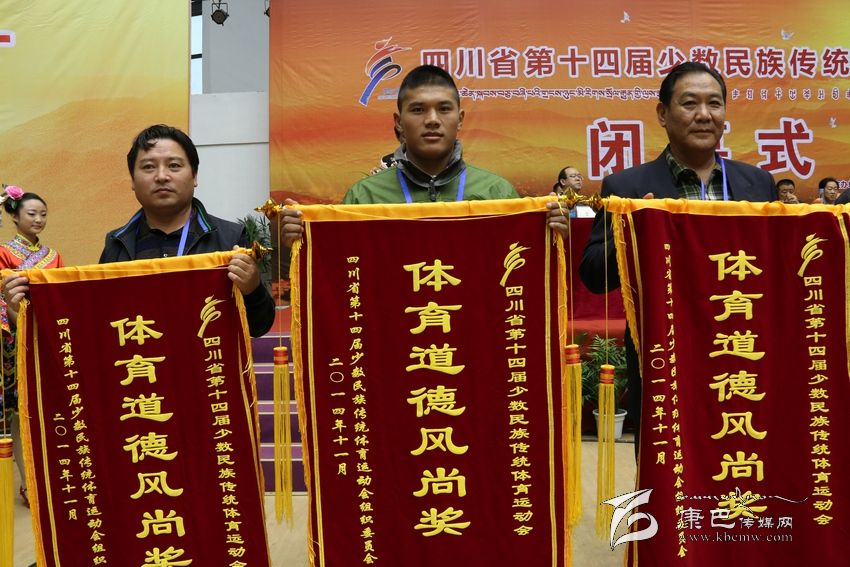 在閉幕式上的頒獎儀式上,本屆組委會分別頒發(fā)了本屆民運(yùn)會各競賽項目團(tuán)體一等獎、開幕式大型文體表演特等獎、體育道德風(fēng)尚獎。我州代表團(tuán)獲本屆民運(yùn)會表演項目一等獎、體育道德風(fēng)尚獎。據(jù)悉,獲得體育道德風(fēng)尚獎的還有宜賓市代表團(tuán)、阿壩藏族羌族自治州代表隊、涼山彝族自治州代表隊、成都市代表團(tuán)、攀枝花市代表團(tuán)、瀘州市代表團(tuán)、綿陽市代表團(tuán)、樂山市代表團(tuán)、廣安市代表團(tuán)、達(dá)州市代表團(tuán)、雅安市代表團(tuán)、西南民族大學(xué)代表團(tuán)、成都體育學(xué)院代表團(tuán)。