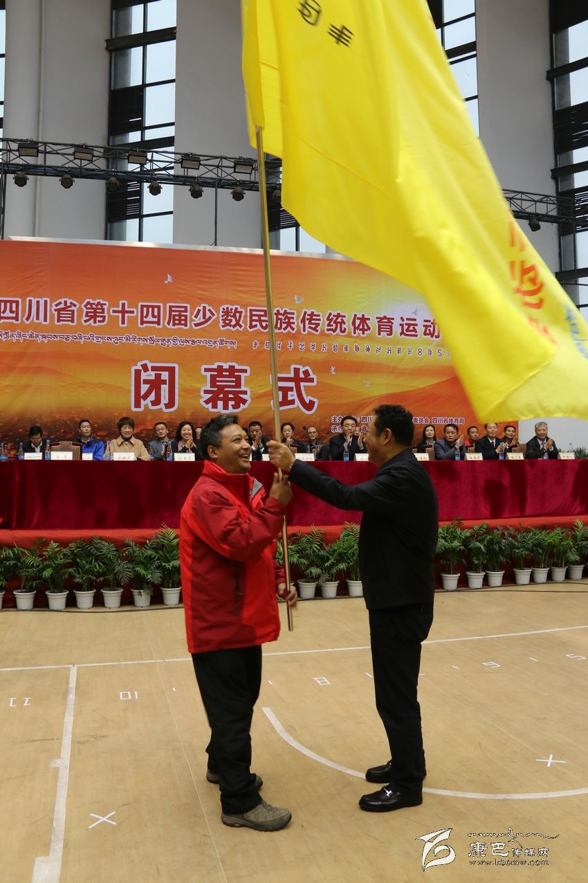 2018年,第十五屆省民運(yùn)會將由我州承辦,屆時,四川省各民族體育健兒將齊聚情歌故鄉(xiāng)康定。閉幕式上,我州代表團(tuán)發(fā)出誠摯邀請,并與各民族體育健兒相約:四年后,康巴相聚。、