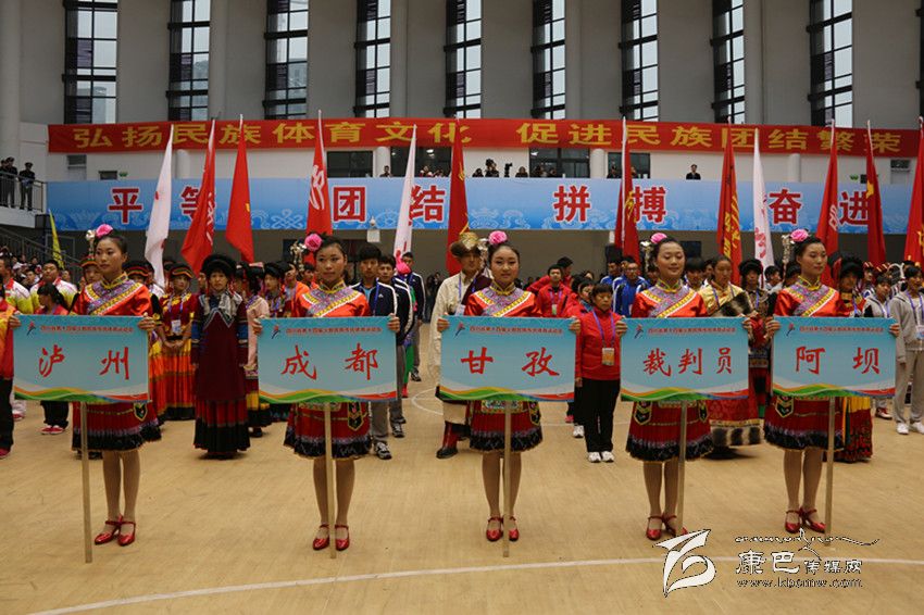 2014年11月4日—9日,四川省第十四屆少數(shù)民族傳統(tǒng)體育運(yùn)動(dòng)會(huì)在宜賓市隆重舉行。在此次民運(yùn)會(huì)上,由138人組成的甘孜州代表團(tuán)代表112萬父老鄉(xiāng)親參加了本屆民運(yùn)會(huì)射弩、民族式摔跤(格、北嘎、且里西、絆跤)、蹴球、押加、珍珠球、高腳競速、板鞋競速、陀螺、苗族手毽等9個(gè)競賽項(xiàng)目和競技類、技巧類、綜合類3個(gè)表演項(xiàng)目的比賽。