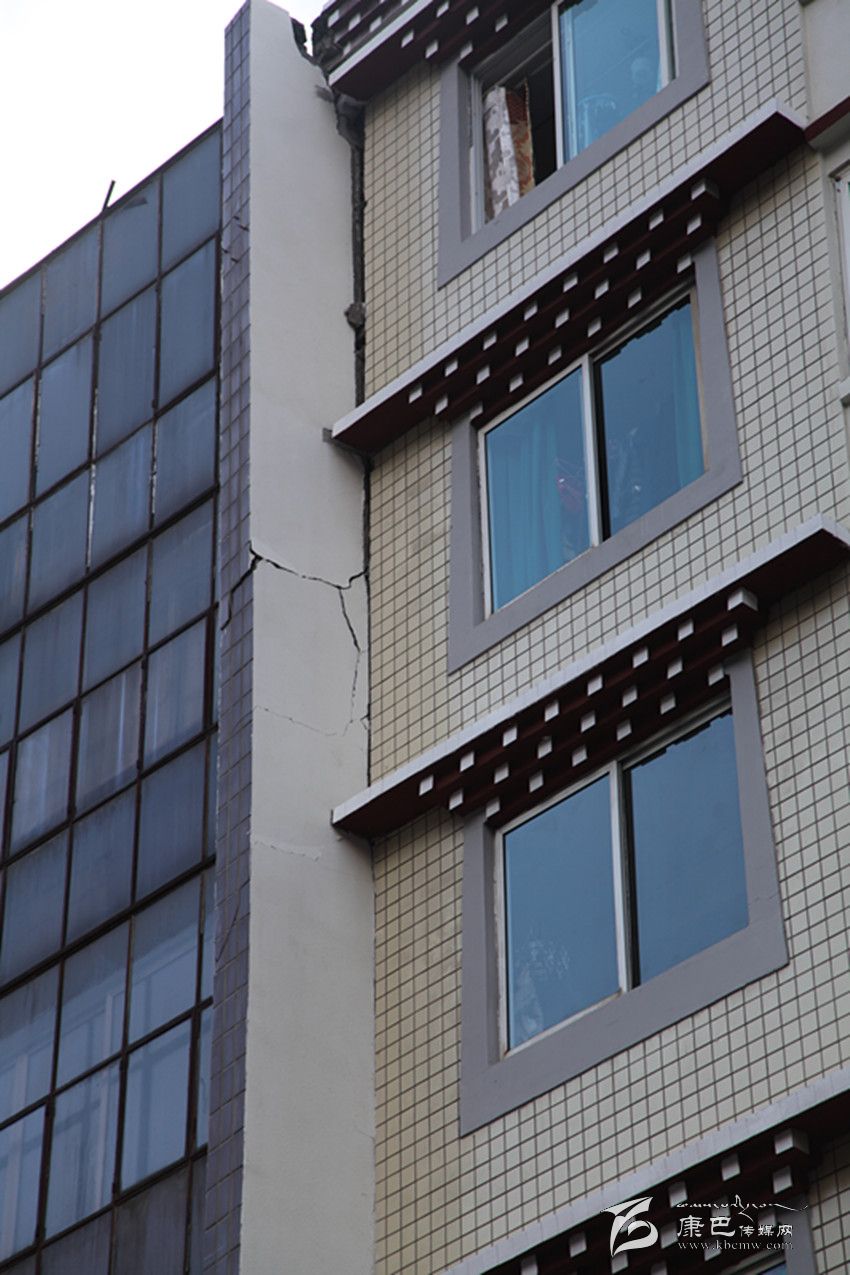 剛沖出報社不遠(yuǎn),記者就發(fā)現(xiàn)光明路光明小區(qū)附近的小巷中有一些外墻磚不規(guī)則地散落在地上,抬頭一看,發(fā)現(xiàn)一幢建筑的外墻已經(jīng)脫落了一大塊;在州統(tǒng)計局上側(cè),一幢建筑外墻出現(xiàn)了裂縫,過往的人們都在紛紛觀望,還有人在用手機拍攝。在西大街,有一幢建筑的陽臺出現(xiàn)移位,與主體建筑間形成了裂縫;在州人民醫(yī)院,門診部大樓出現(xiàn)了嚴(yán)重裂縫,大樓內(nèi)的人員已經(jīng)全部撤離。記者在采訪中發(fā)現(xiàn),此次地震使康定城區(qū)內(nèi)建筑出現(xiàn)了不同程度的外墻磚脫落、裂縫等,城郊有圍墻倒塌的情況發(fā)生,城區(qū)沒有出現(xiàn)建筑物倒塌的情況。