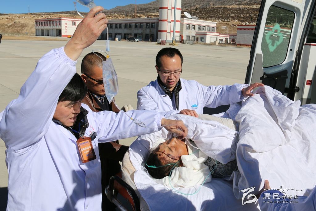 當(dāng)日上午8時40分,州人民醫(yī)院醫(yī)護人員對該名傷員進行了轉(zhuǎn)運前的最后護理。隨后,救護車在綠色通道疏導(dǎo)下,直奔海拔4238米康定機場,在轉(zhuǎn)運的過程中,考慮到當(dāng)?shù)馗吆0蔚那闆r,救護車上安裝了供氧裝置,醫(yī)護人員全程陪護,將送他到華西醫(yī)院救治。