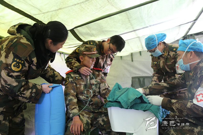 武警二支隊(duì)一中隊(duì)上等兵楊貞川在搭建板房時(shí),不慎左手拇指深度劃傷2CM,武警四川省總隊(duì)醫(yī)院周續(xù)翔副主任與何佳燕護(hù)士長(zhǎng)對(duì)楊貞川實(shí)施清創(chuàng)縫合術(shù)。術(shù)中,小戰(zhàn)士突感頭暈,考慮為輕度創(chuàng)傷性休克,鄭聯(lián)護(hù)士長(zhǎng)立即拿來氧氣袋給予吸氧,并像母親一樣關(guān)心安慰她。手術(shù)在4名醫(yī)務(wù)人員的共同努力下順利完成,手術(shù)完成后醫(yī)護(hù)人員向其發(fā)放了消炎藥、并囑其按時(shí)換藥,到期扯線。 記者楊珂攝影報(bào)道