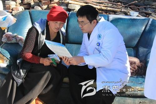 本網(wǎng)訊(李銘暇 孫學花文/圖)12月2日,海拔近3500米的康定縣新都橋鎮(zhèn),清晨的風帶著寒意,然而,在這初冬的清晨,卻有幾個人正冒著寒風奔走在救災帳篷之間。他們身著白大褂,手里拿著藏漢雙語宣傳資料、藥品和血壓計等醫(yī)療器械,他們就是“雅安市抗震救災醫(yī)療救援小組”的成員。
