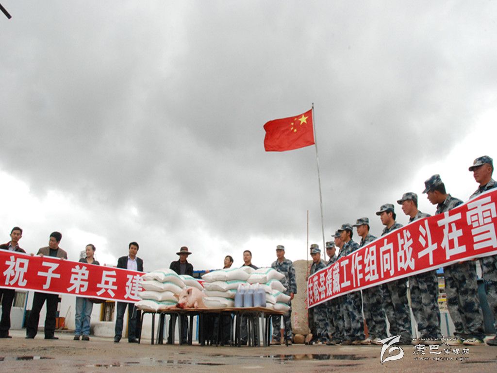 援藏干部與當(dāng)?shù)攸h員組成的黨員搶險先鋒隊。