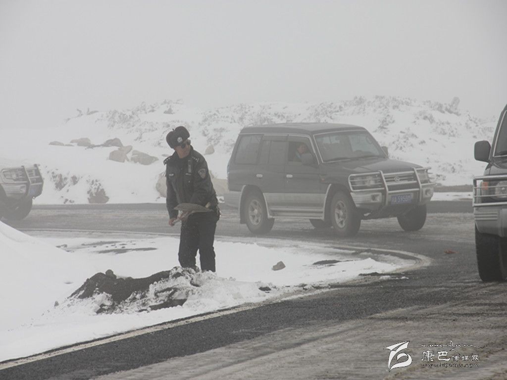 高高的折多山,氣候惡劣,有時(shí)竟七月飛雪。在風(fēng)雪中,處處可以看到王洛讓偉岸的身軀,因?yàn)橛辛怂麄兊膱?jiān)守,換來游客對甘孜交警的由衷贊嘆。
