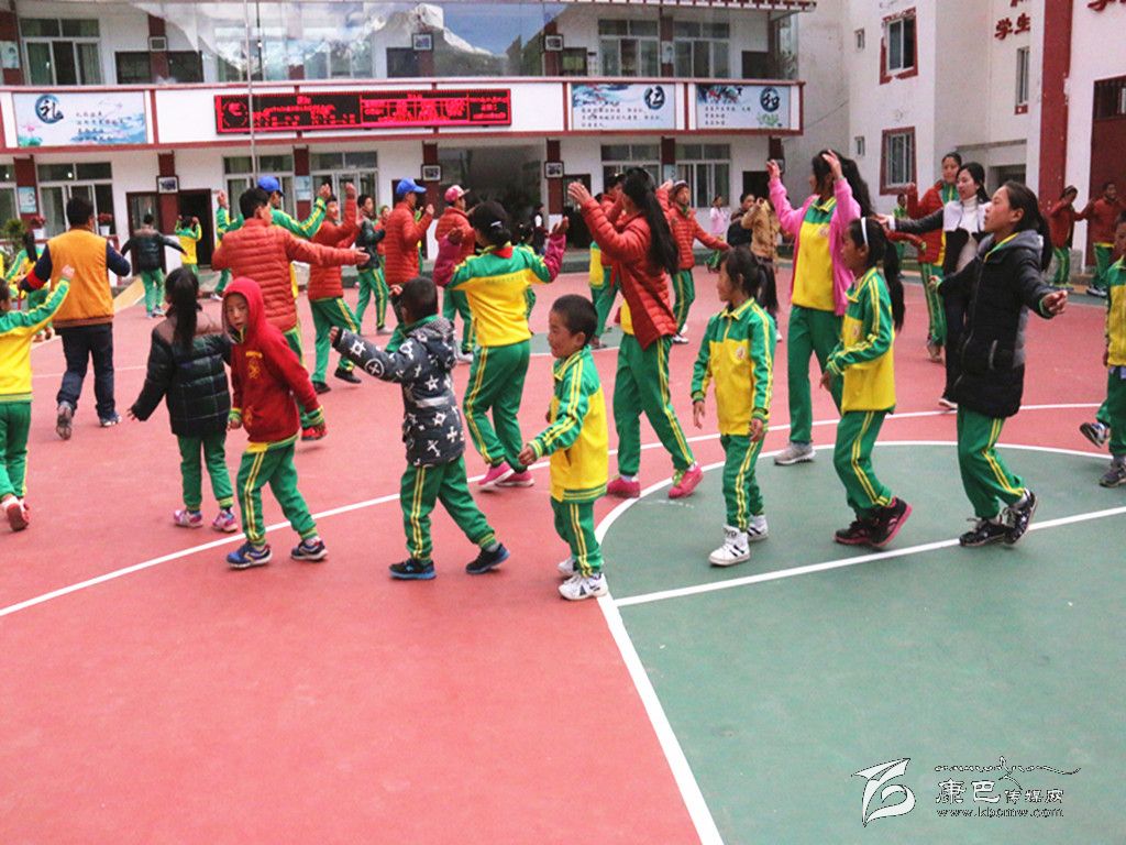 學(xué)生們在操場上跳鍋莊。