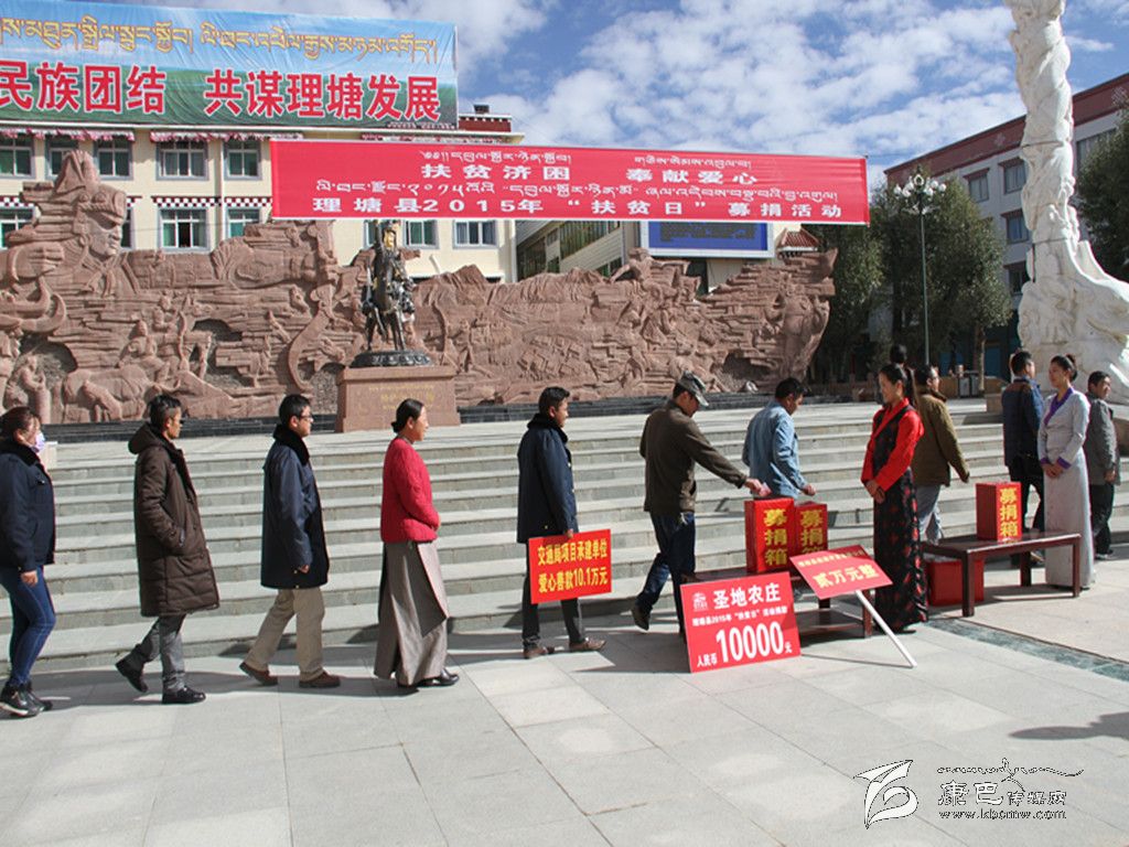 本網(wǎng)訊(葉強平 文/圖)10月17日,在紀念全國第二個“扶貧日”之際,理塘縣縣級機關(guān)干部職工、高城鎮(zhèn)農(nóng)牧民、駐軍官兵、中小學(xué)生、寺廟僧侶、個體工商戶、公司企業(yè)代表來到縣城格薩爾廣場,為扶貧濟困奉獻一份愛心。