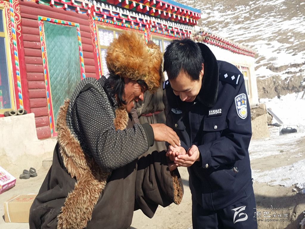 一月的扎溪卡草原大雪飄飄,氣溫降到了零下,州公安局結(jié)對(duì)認(rèn)親小分隊(duì)的民警們不顧嚴(yán)寒,在春節(jié)和藏歷新年即將來(lái)臨之際,帶著黨委政府的問候、帶著州公安局黨委和全局民警職工的一片心意,驅(qū)車千里,來(lái)到被譽(yù)為生命禁區(qū)的石渠縣格孟鄉(xiāng)走訪慰問,小分隊(duì)的民警們遠(yuǎn)遠(yuǎn)地就看見“親戚”們排著長(zhǎng)隊(duì),拿著哈達(dá)在風(fēng)雪中等候,當(dāng)小分隊(duì)民警來(lái)到他們面前時(shí),老村支書拉著小分隊(duì)民警的手激動(dòng)地說(shuō):“快過(guò)春節(jié)了,天這么冷,還下著雪,路又那么遠(yuǎn),你們還要來(lái)看我們,還帶來(lái)那么多慰問品,太感謝了!感謝黨!感謝政府!感謝州公安局!還有我們的公安民警。”