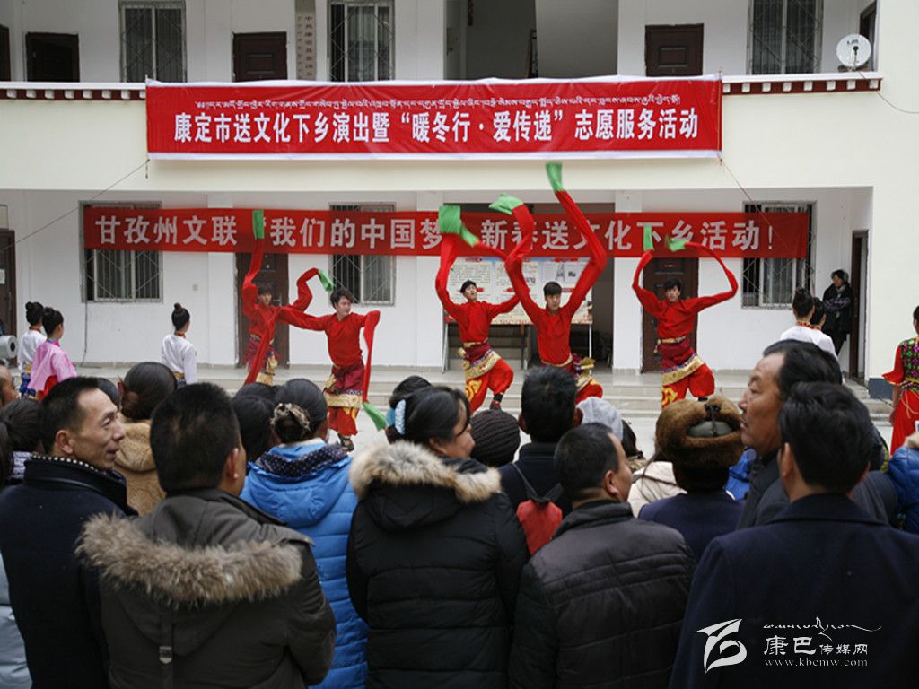 本網(wǎng)訊(本網(wǎng)記者 張兵)1月8日,由州文聯(lián)與康定市聯(lián)合主辦的以“我的中國(guó)夢(mèng)”為主題的2016送文化下鄉(xiāng)文藝演出隊(duì)迎著冬陽(yáng)伴著寒風(fēng)走進(jìn)大山深處的金湯鎮(zhèn)。整臺(tái)演出節(jié)目新穎、形式多樣,獨(dú)唱、歌舞、川劇、政策宣講等節(jié)目精彩紛呈,不時(shí)博得觀眾們的熱烈掌聲,鎮(zhèn)政府成了歡樂的海洋。同時(shí),州攝影家協(xié)會(huì)、州書法家協(xié)會(huì)的專家還現(xiàn)場(chǎng)免費(fèi)拍攝全家福照片、免費(fèi)書寫春聯(lián)。“送文化下鄉(xiāng)”演出隊(duì)帶去了黨和政府對(duì)人民群眾的關(guān)懷,同時(shí)也營(yíng)造了文明、健康、歡樂、祥和的節(jié)日氣氛。當(dāng)天,“送文化下鄉(xiāng)”演出隊(duì)不辭辛苦,還在姑咱鎮(zhèn)進(jìn)行了演出。