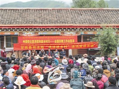 通過建好“宗教寺廟、鄉(xiāng)村牧場、中小學(xué)校”三大宣傳基地,開展個性化宣傳,我州逐步形成了普法教育由灌輸型向交互型轉(zhuǎn)變,全面構(gòu)建起了一個由學(xué)生群體、僧尼群體進而輻射到全社會的法治宣傳新網(wǎng)絡(luò)。在法治春雨的澆灌下,孕育和新生了大量的法治“干細胞”,使雪域甘孜的“法治味”愈加濃厚。