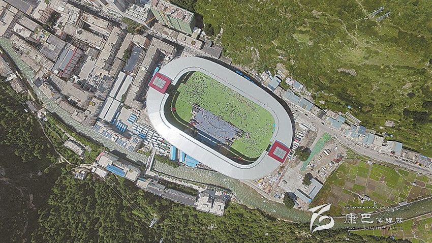 康定北門體育場全景航拍。