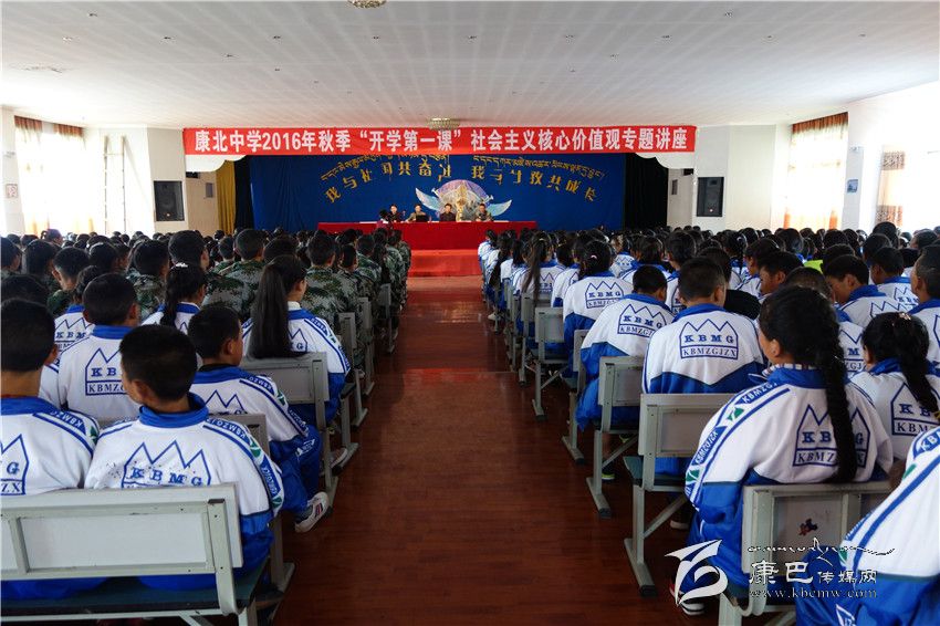 9月5日上午,康北民族高級中學(xué)迎來新學(xué)期的第一課,由康定中學(xué)教師李發(fā)軍作專題講座,康北民族高級中學(xué)近700名師生聆聽講座。授課中,李發(fā)軍從社會主義核心價值觀提出的背景、社會主義核心價值觀的科學(xué)內(nèi)涵、怎樣踐行社會主義核心價值觀三個方面以深入淺出、通俗易懂的方式引導(dǎo)學(xué)生們理解社會主義核心價值觀的內(nèi)涵,弘揚中華民族的傳統(tǒng)美德,激發(fā)報國情懷。