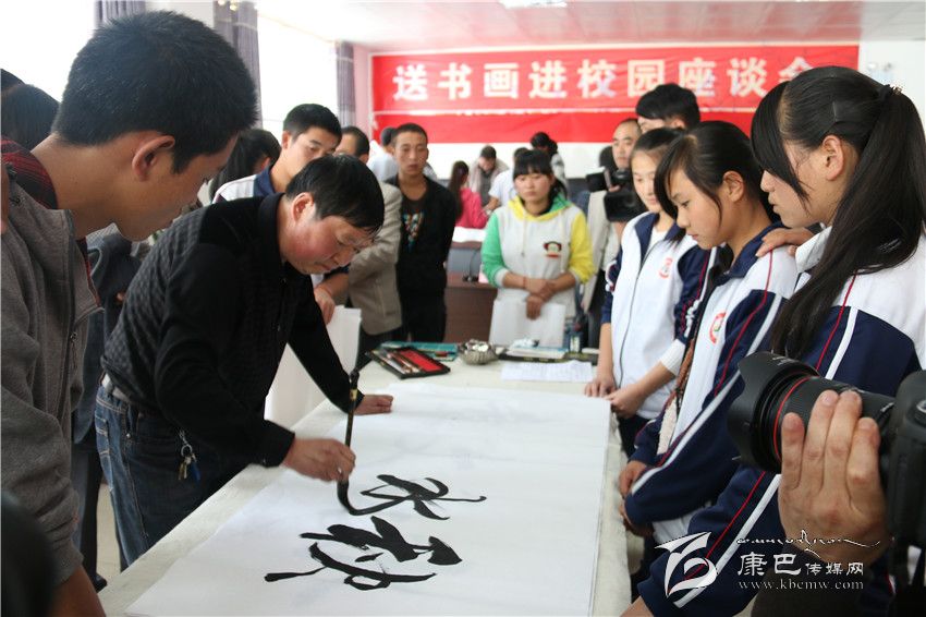 州關(guān)工委領(lǐng)導(dǎo)送書(shū)畫(huà)進(jìn)校園。