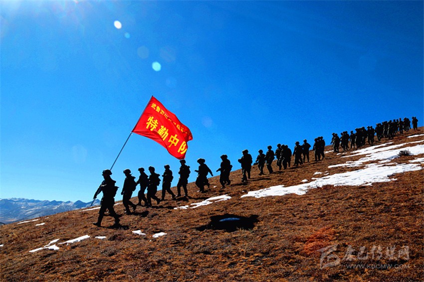 本網(wǎng)訊(王晶文 /圖)連日來(lái),武警四川省總隊(duì)第二支隊(duì)的特戰(zhàn)隊(duì)員們?cè)诤0?/span>4800多米的折多山上進(jìn)行突破極限訓(xùn)練。