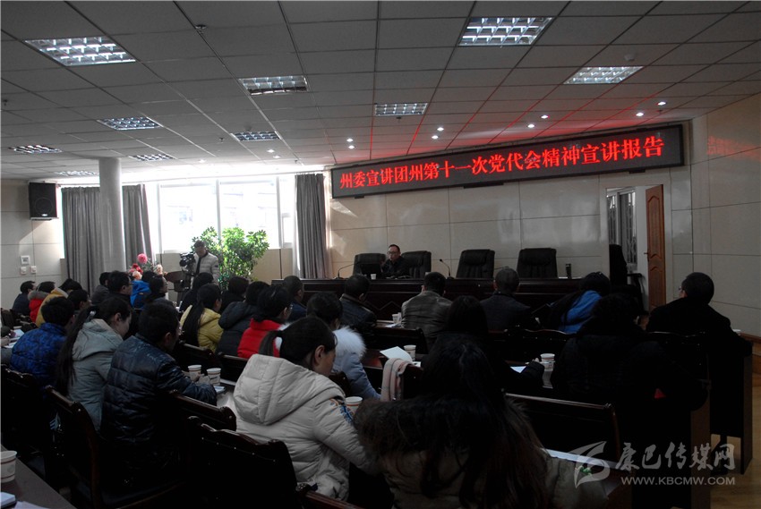 徐杰通過PPT的形式,圖文并茂的從全面了解州第十一次黨代會的主題、主要成果和起草過程,準確認識過去五年工作的成績經(jīng)驗,深刻把握州第十一次黨代會對當前形勢的分析、五年工作的指導思想和奮斗目標,精確把握和全面落實未來五年全州經(jīng)濟社會發(fā)展任務,堅持全面從嚴治黨、不斷夯實黨的執(zhí)政根基五個方面,以詳實的數(shù)據(jù)、生動的畫面、平實的語言,提綱挈領、深入淺出地講解了州第十一次黨代會精神。