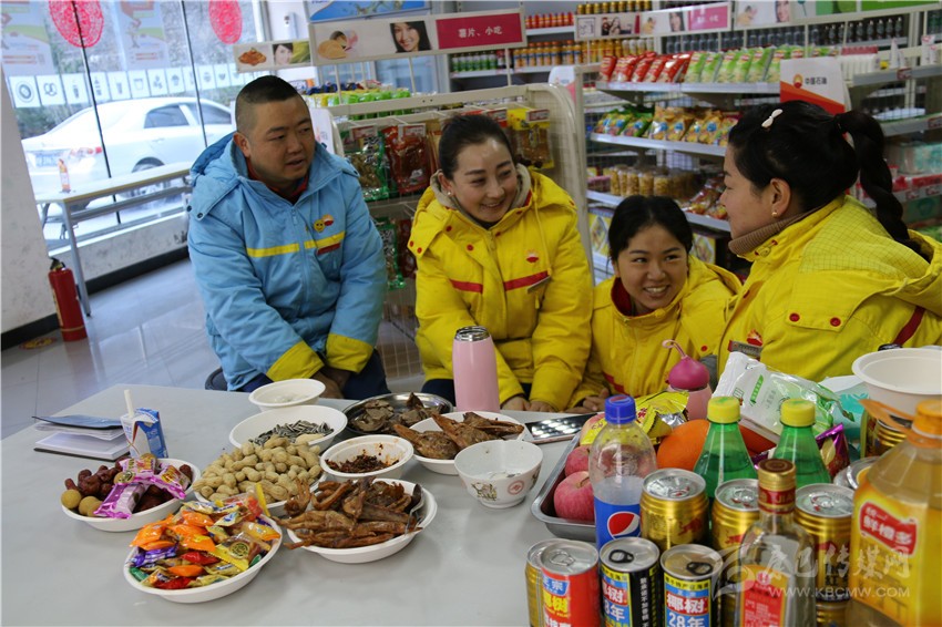 大年初一,記者看到位于康定入城口的跑馬山加油站里,過往車輛紛紛過來加油,工作人員熟練地為每一臺(tái)大小車輛加油。當(dāng)記者問他們怎么沒有回家過年時(shí),幾位年輕的女工作人員都表現(xiàn)出一臉的無奈。工作人員龍卡志瑪說:“我們加油站一年四季天天都是24小時(shí)輪流值班,全天候?yàn)檫^往車輛提供加油服務(wù),每年都不能回家過年,大家從家里帶來一些年貨,一起在這里簡單地弄幾個(gè)菜吃,就算過年了。”