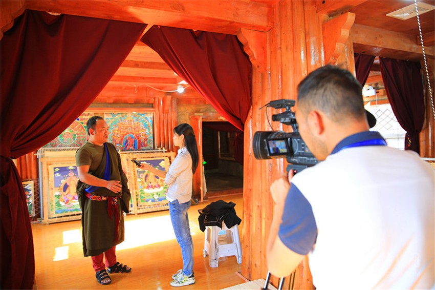采訪二團成員正在巴塘縣采訪。