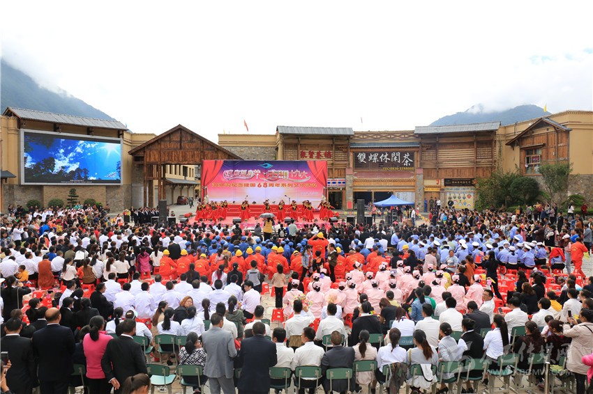 文藝演出在雄壯的國(guó)歌聲中拉開(kāi)了帷幕,傳統(tǒng)藏戲、藏族歌舞、詩(shī)歌朗誦、樂(lè)隊(duì)演奏等多種形式的文藝節(jié)目,不但給祖國(guó)母親獻(xiàn)上了一份特別的68歲“生日蛋糕”,也為喜迎黨的十九大召開(kāi)營(yíng)造了良好氛圍。歌聲陣陣、舞蹈連連,朗誦激昂、鼓樂(lè)齊鳴,把演出一次又一次推向高潮,把歡樂(lè)一陣又一陣帶給觀眾。大家揮舞手中的黨旗、國(guó)旗,表達(dá)自己的喜悅之情。文藝匯演持續(xù)近兩個(gè)小時(shí),在嘹亮動(dòng)聽(tīng)、旋律激昂的《再唱山歌給黨聽(tīng)》的歌聲中落下帷幕。