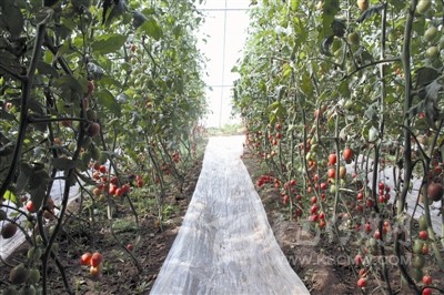 理塘縣瑪吉阿米花園農莊的水果番茄長勢喜人。